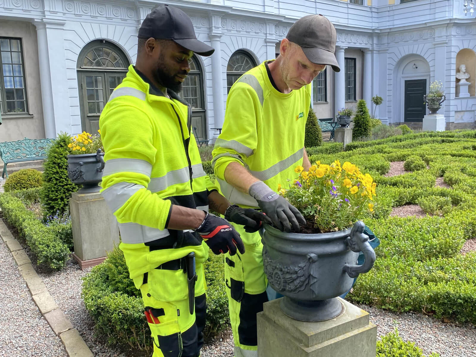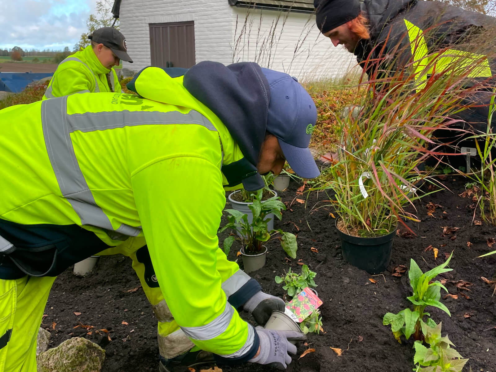 - Plantering och skötsel av utplanteringsväxter i urna och mark